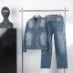 2024 Autumn Winter New Men's Denim Jacket Jeans Suit Blue